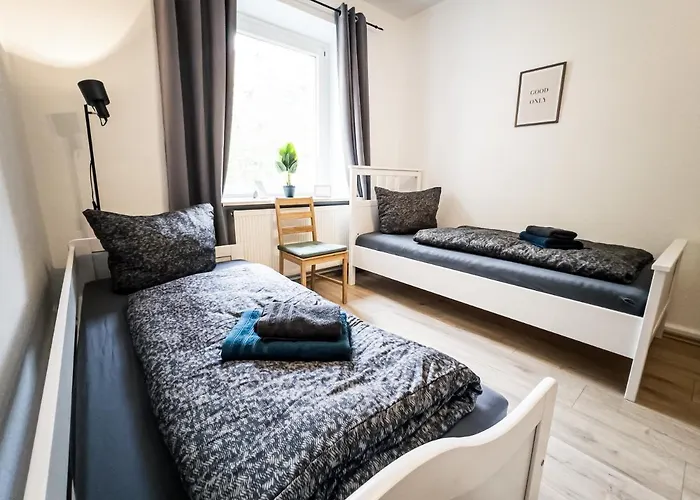 Situado a unos 3 km del Zoo de Leipzig, Ruhige 2 Schlafzimmer Wohnung: 5 Einzelbetten + Kuche, Modernes Bad, Tv, Waschmaschine también cuenta con un acceso fácil a la estación de tren Leipzig Nord, a aproximadamente 800 metros.